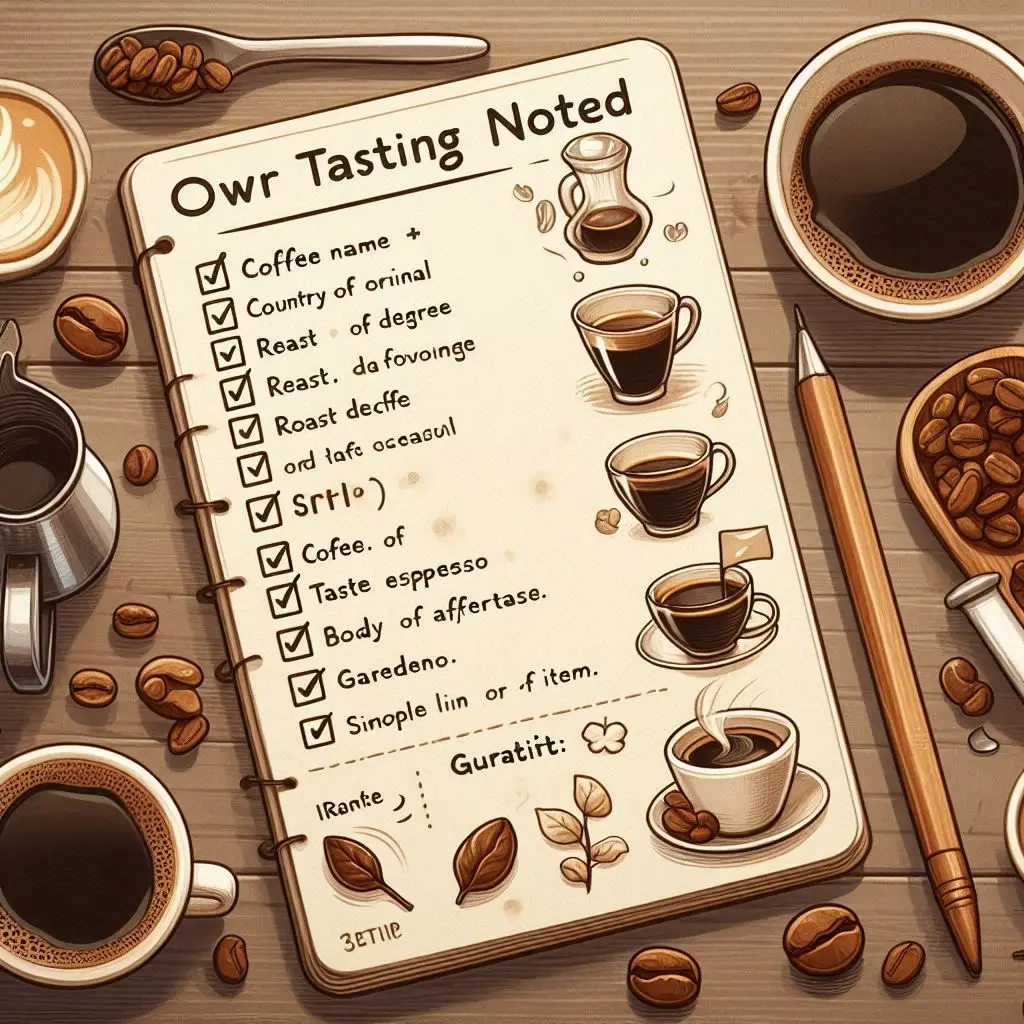 테이스팅 노트란, 커피의 향과 맛을 객관적이고 감각적으로 기록한 시음 노트로, 한 잔의 커피가 주는 인상과 감정을 언어로 남기는 과정이에요.
