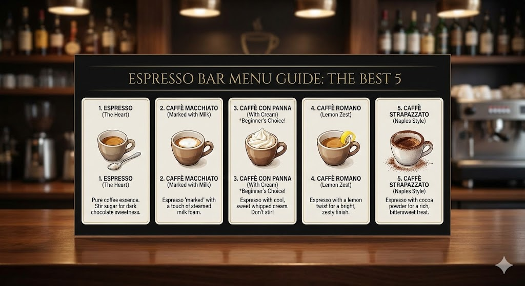 처음 문을 열고 들어가면 좌석이 없어 당황할 수 있습니다. 당황하지 않고 자연스럽게 이탈리아 현지인처럼 즐기는 5단계 루틴을 소개합니다.